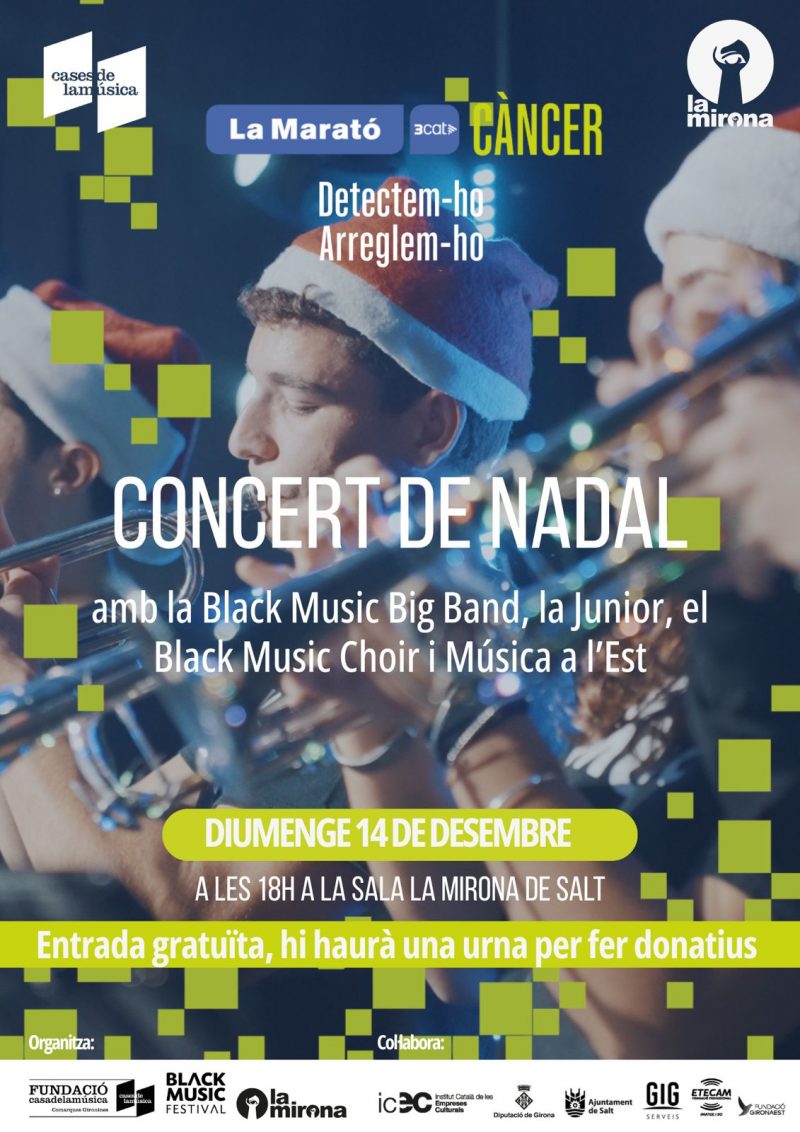 El diumenge 14 de desembre, acompanya’ns a La Mirona per un concert especial de la Black Music Big Band, els juniors, el projecte Música a l’Est i el Black Music Choir, en suport a La Marató de 3cat dedicada a la lluita contra el càncer.