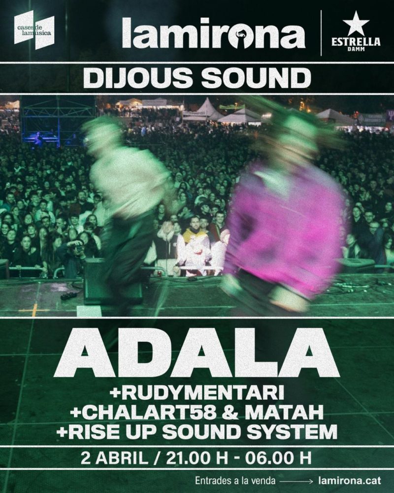 A l’escenari podrem gaudir d’Adala —en l’únic concert de l’any a la província— i de Rudymentari, que presentaran el seu nou disc. Al sound system, viurem el show de Chalart58 & Matah i de Rise Up Sound System. A partir de les 03 h sessió de Zangiff (DJ) qui ens oferirà una selecció de drum & bass.